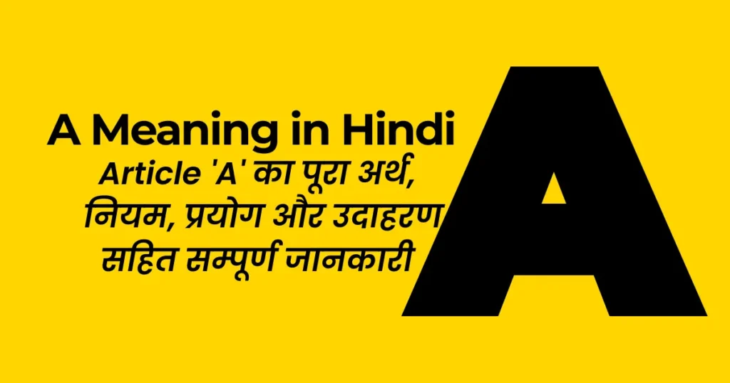 इस article में हम आपको A Meaning in Hindi विस्तार से बताएंगे — इसके सभी अर्थ, प्रयोग के नियम, A और AN में अंतर, और 20 से अधिक examples के साथ।
