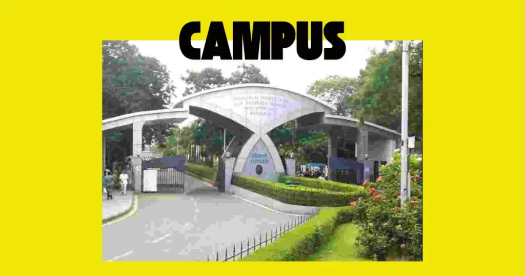 मुख्य campus में एक administrative block, एक academic centre, nursing college, सात hospital blocks, और चार residential complexes हैं। यह पूरी तरह से आत्मनिर्भर campus है जहां सभी सुविधाएं उपलब्ध हैं – post office, bank, shopping centre, hostels, सब कुछ। समझ रहे हैं न, सब कुछ |