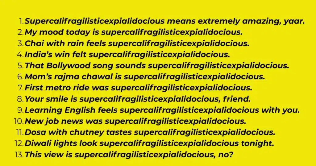 Supercalifragilisticexpialidocious से 30 sentences जिसका आप इसेतमाल अपने अंग्रेजी को अच्छा करने के लिए –